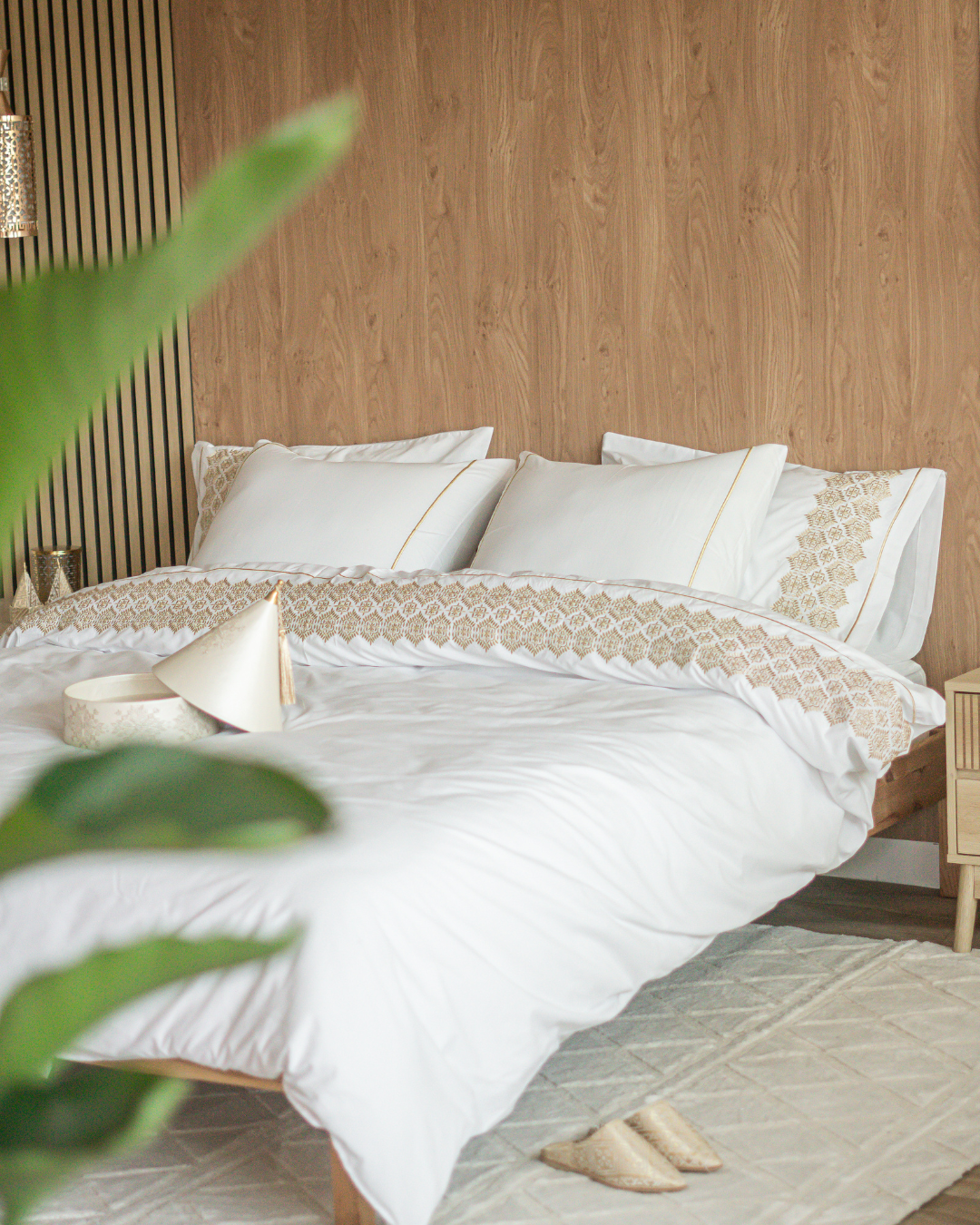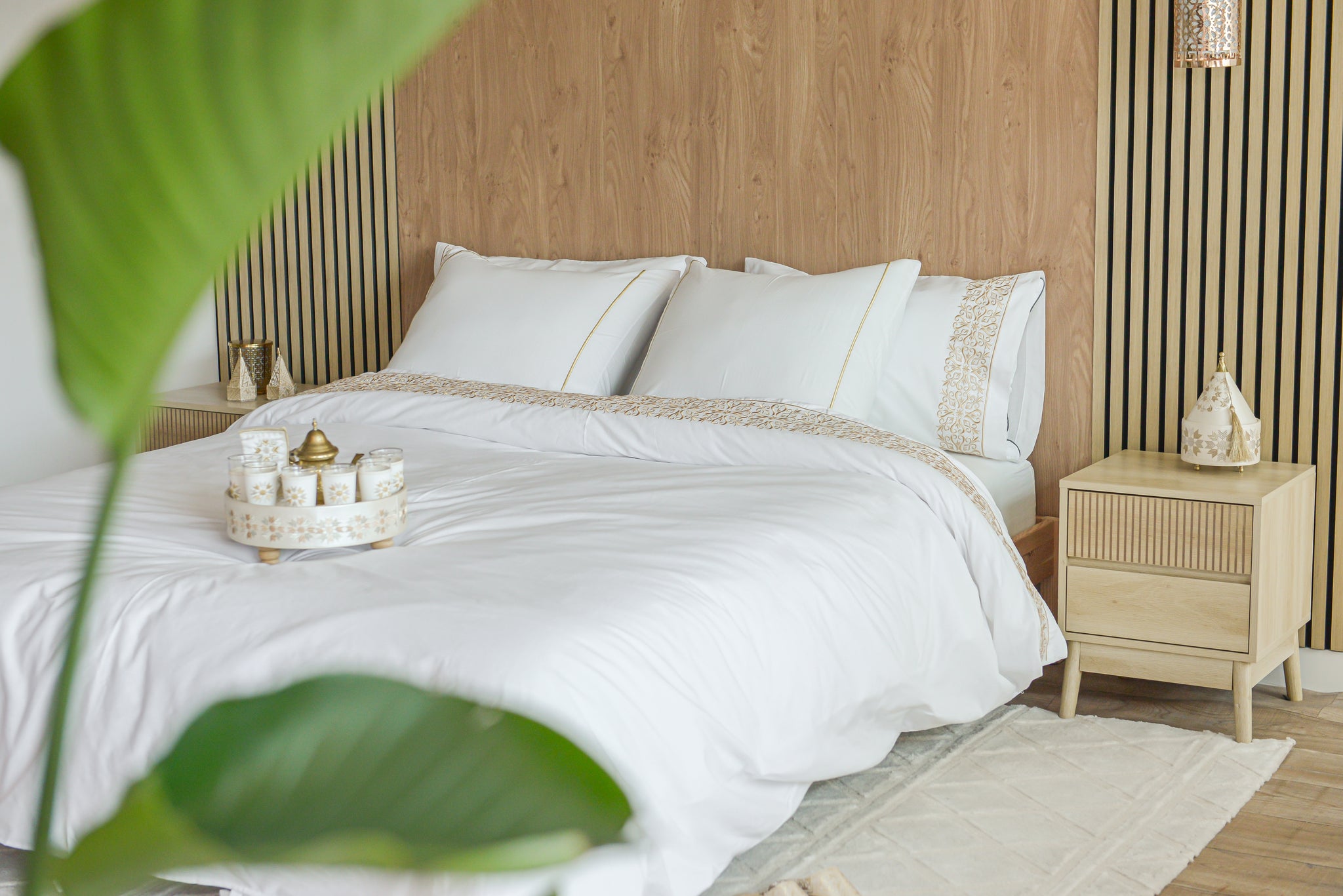Trek het prachtige katoenen dekbedovertrek over het dekbed en laat de zorgen